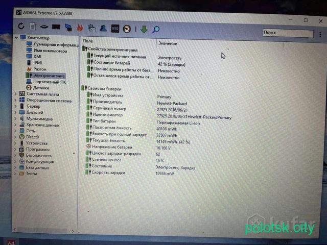 Износ батарейки 16%, покупалась новая пару лет назад, аккумулятор держит хорошо (3 часа смело), установлена Windows 10 и офис.