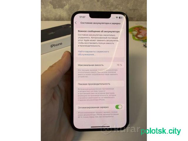 Продам айфон 13 128 Гб . Состояние телефона и аккумулятора на фото. Район ул. Дружбы .