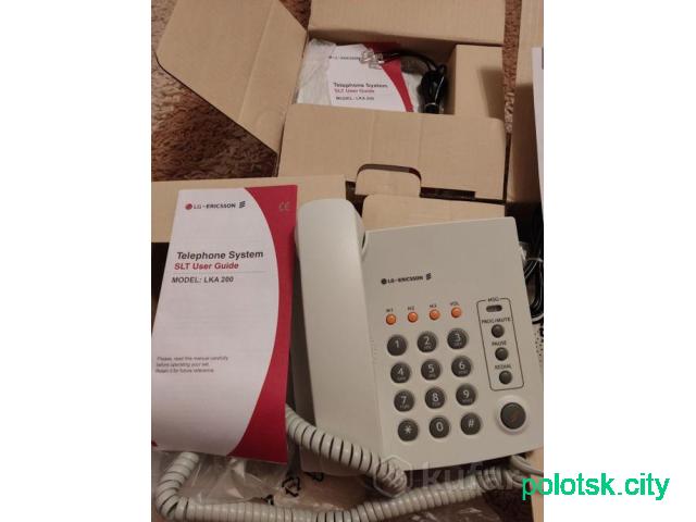 Телефон стационарный проводной новый. Самый простой и надёжный, имеет 4 кнопки памяти, повторный набор последнего номера.