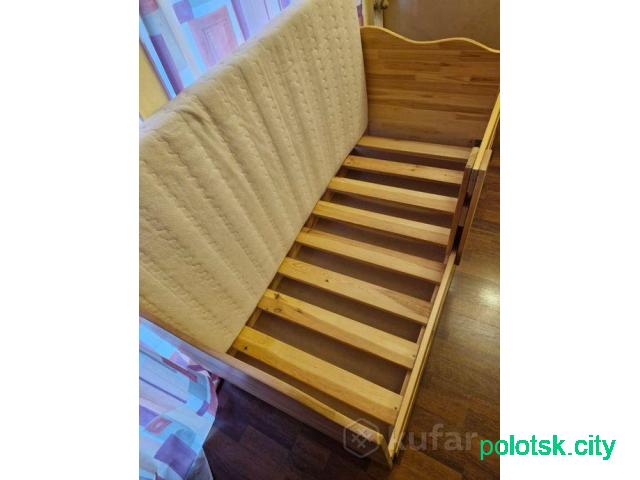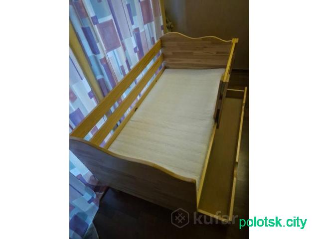 Кровать детская с матрасом из кокосовой стружки, перегародка съёмная, в отличном состоянии. Размеры 140/70.