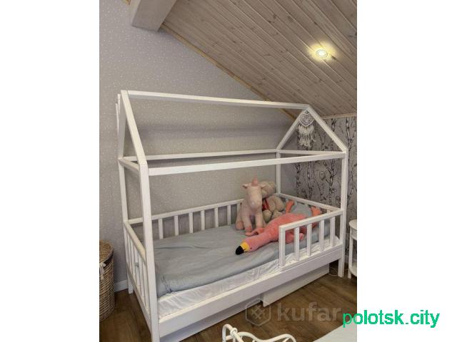 Деревянная кровать в виде домика с выдвижными ящиками , размер по матрасу 90*200 - 2шт цена за 1 кровать с матрасом 500р