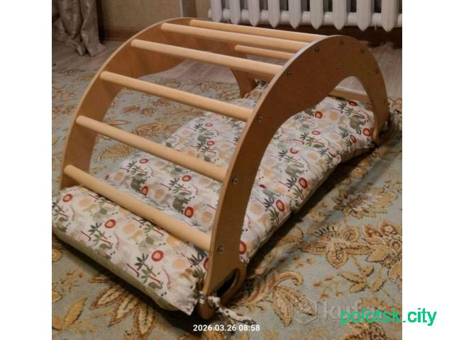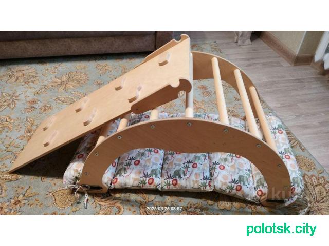 Спортивный комплекс арка-качалка Пиклера с горкой-скалодром и матрасом. Всё в отличном состоянии. Мягкую собаку из объявления отдадим в придачу.