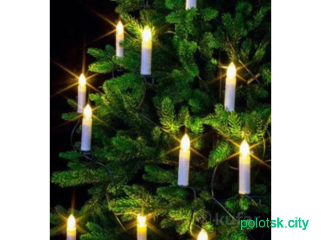 Продам елочную гирлянду свечи. Не новая. 20 штук свечей. Высота 7 см., диаметр 1,5 см. Питание от сети. Горят не мерцающим светом. Некоторые лампочки заедают, потухнут, потом опять горят.