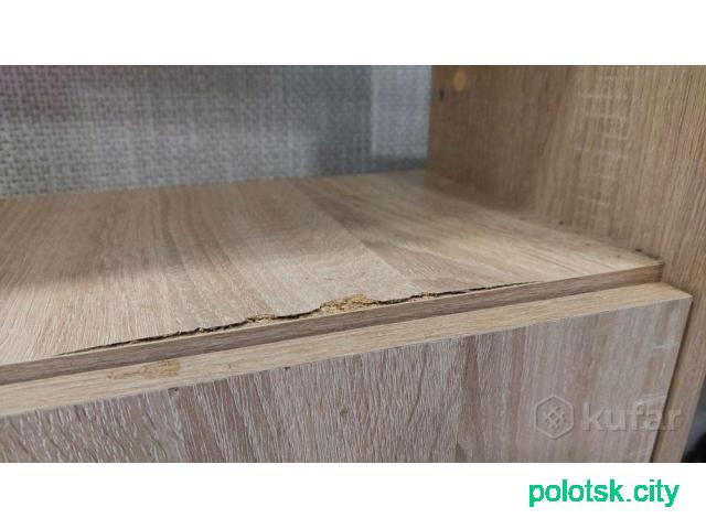 Стол в нормальном состоянии. Из косяков немного вздулось двп (над нижним шкафчиком, на фото 2) и немного разрушилось двп в месте крепления нижней опоры столешницы (на внешний вид, т.к. в малозаметном месте, и на устойчивость не влияет). В осталоном вопросов к внешнему виду и "крепости" стола - нет.