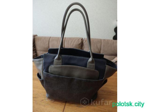 Сумочка в стиле тоут или кросс-бодиЧасы, очки, сумки - Полоцк (Витебская обл.) - 03/04/2026 30.00 BYNТреугольная вставка на передней панели, выполнена из материала с другой текстурой (похоже на замшу или велюр).Оборотная вставка вся из такого материала.Сумочка в идеальном состоянии. Без дефектов.Внутри 3 отделения и есть карманыМожно носить с ремешк...