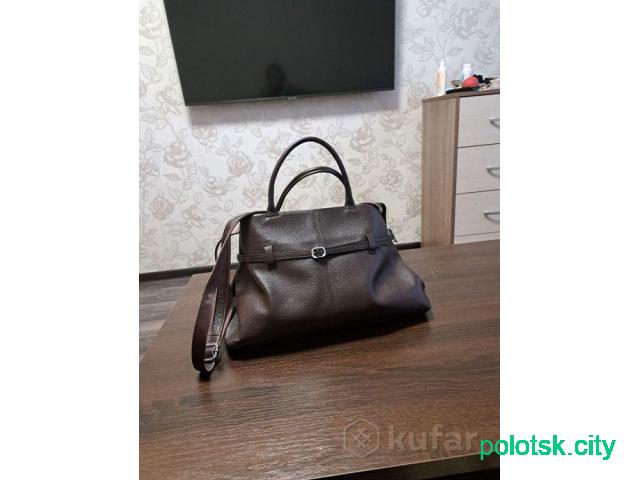 Новая сумочка (с этикеткой), натуральная мягкая кожа, покупала в магазине Risabel. Высота- 22 см, глубина- 12 см, ширина- 35 см., много кармашков внутри, есть дополнительный ремень через плечо. При желании вышлю любым видом почты.