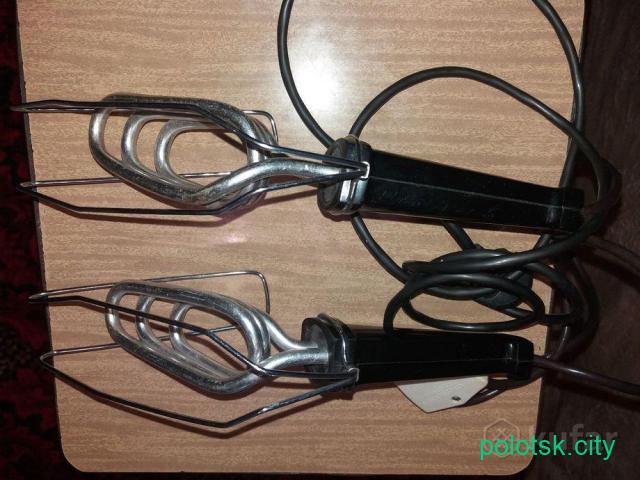 Вставной, мощность 21 ватт, все пластиковые детали из карболита. Проволочная скоба - пружинная, она расправляет обувь и не дает соприкасаться с ТЭНом. Сушитель изготовлен из нержавеющей стали, нагревательный элемент включает три витка.