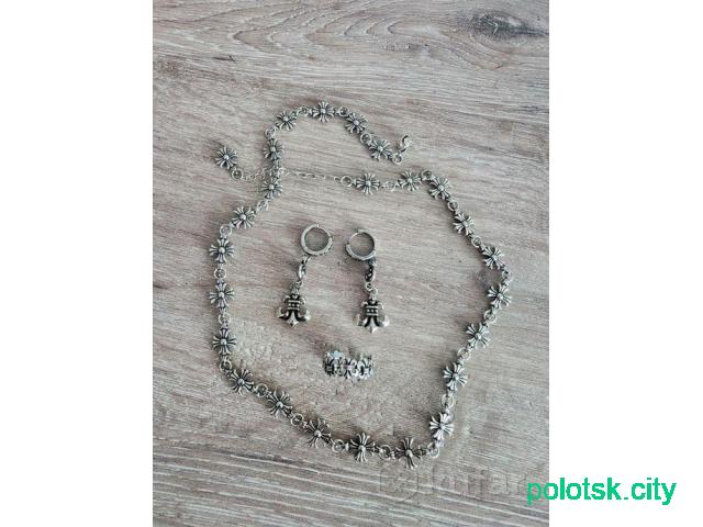 Новый комплект высококачественной бижутерии. Не облазит, можно чистить, можно в нем мыться. Всё покупалось отдельно и купить можно по отдельности.