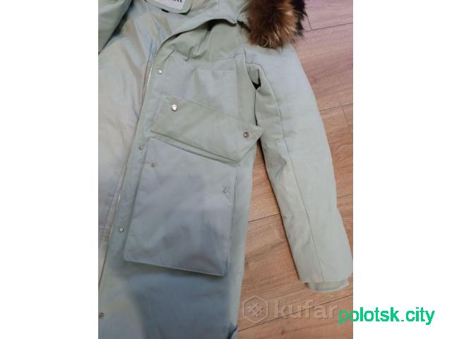 Пальто красивого,нежного цвета.Без дефектов.Мех на капюшоне отстёгивается,на рукавах манжеты.Замеры по требованию