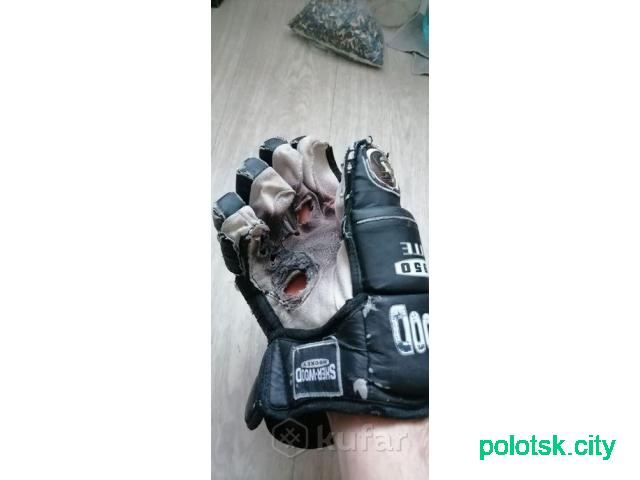 1) Хоккейные краги перчатки SHER-WOOD, Канада, контуры пальцев не порваны, нужен небольшой ремонт ладошек и верха, р-р М 14", 36 см, 15 руб.
